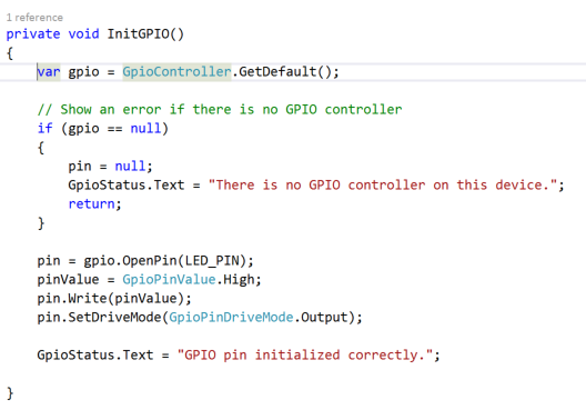 I grabbed the code from Microsoft here. Extracted it somewhere pleasant and then launched the “Blinky.sln”. I found it interesting that the project had XAML files in it as if the project was supposed to have a user interface or something.